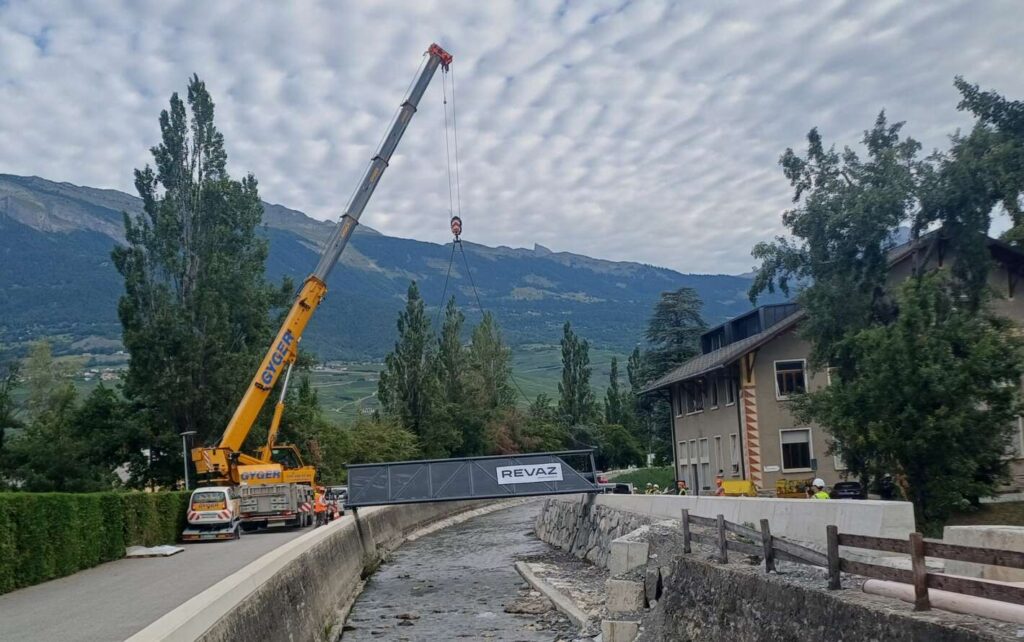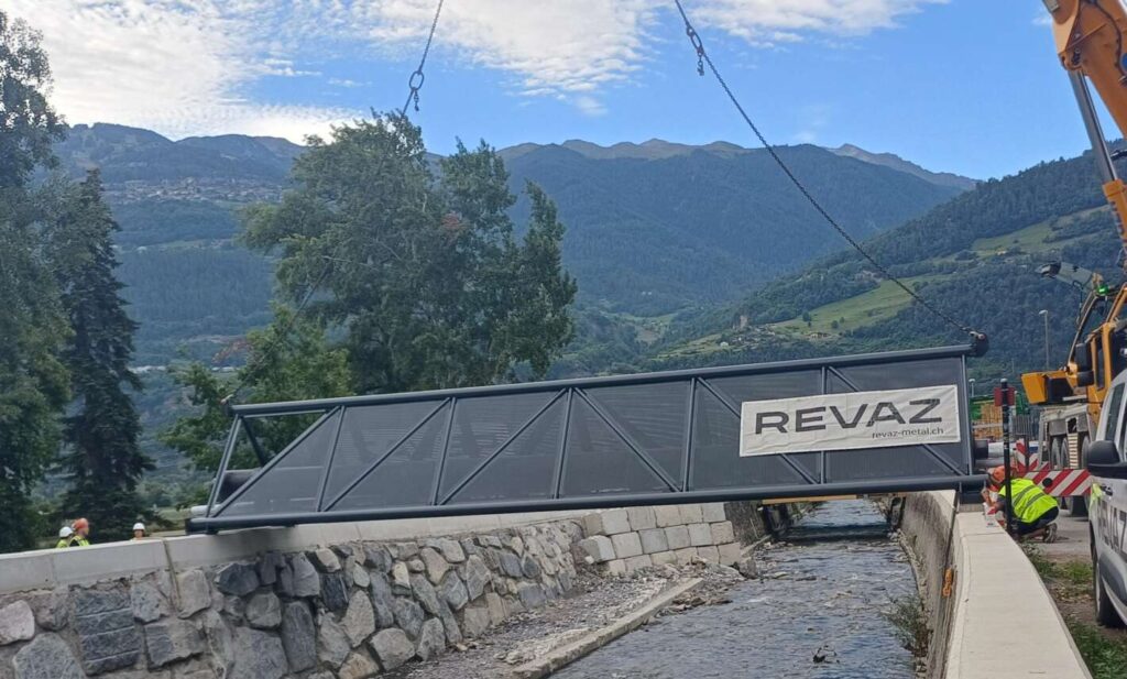 Suite à l'élargissement du lit de la Morge vers l'école d'agriculture de Châteauneuf, une nouvelle passerelle technique de 11.50 m de la portée a été planifiée et mise en place.