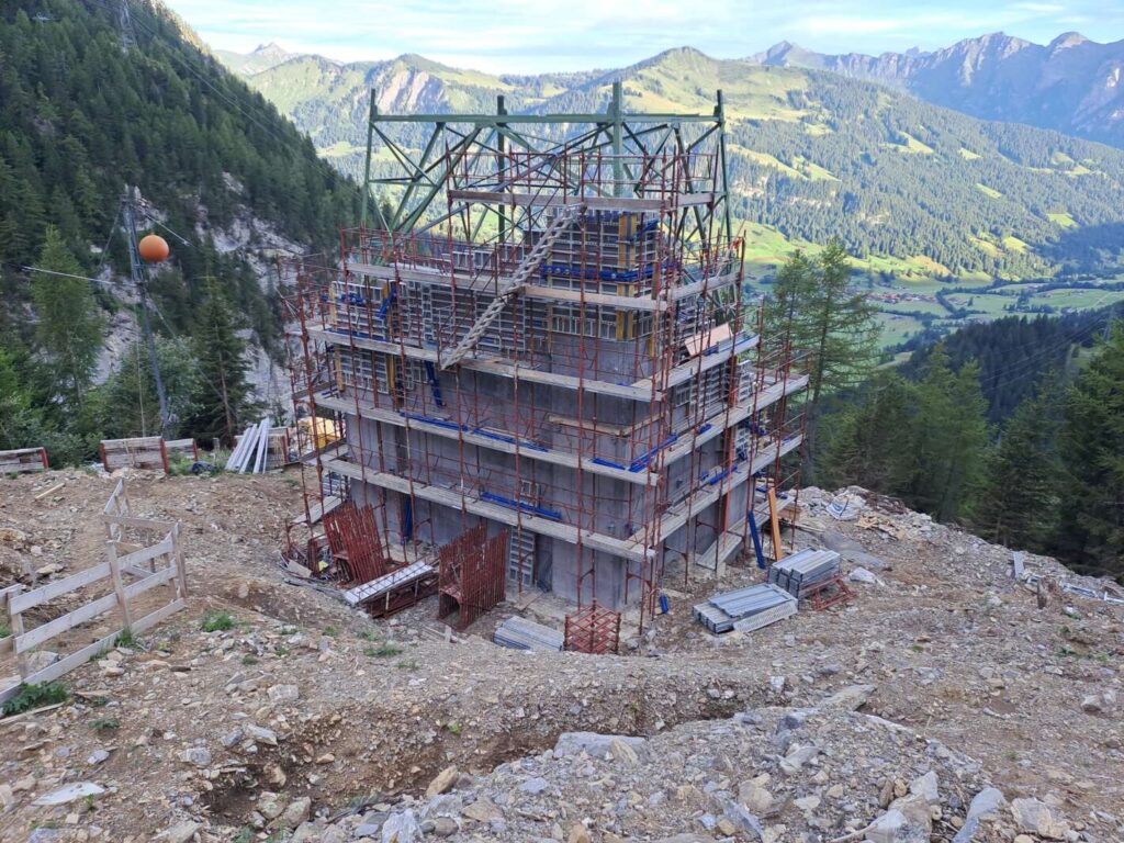 Suite à un éboulement survenu côté Gsteig, la ligne haute tension 220 kV Chamoson-Mühleberg doit être déplacée dans la région du col du Sanetsch. Pour ce faire, 3 nouveaux pylônes sont construits. En raison du remplacement des conducteurs, les fondations de 24 pylônes ont été renforcées entre Savièse et Gsteig